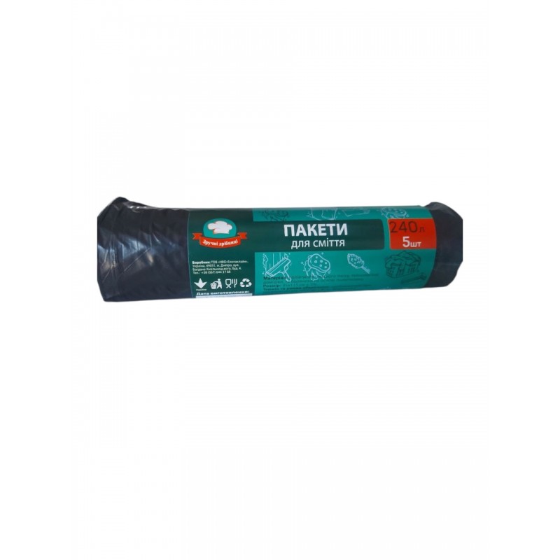 Пакети для сміття 240 літрів 5 шт. (37 мкм, 350 гр/рул) LD виготовлені полімерної плівки, що сприяє якісному та міцному матеріалу.