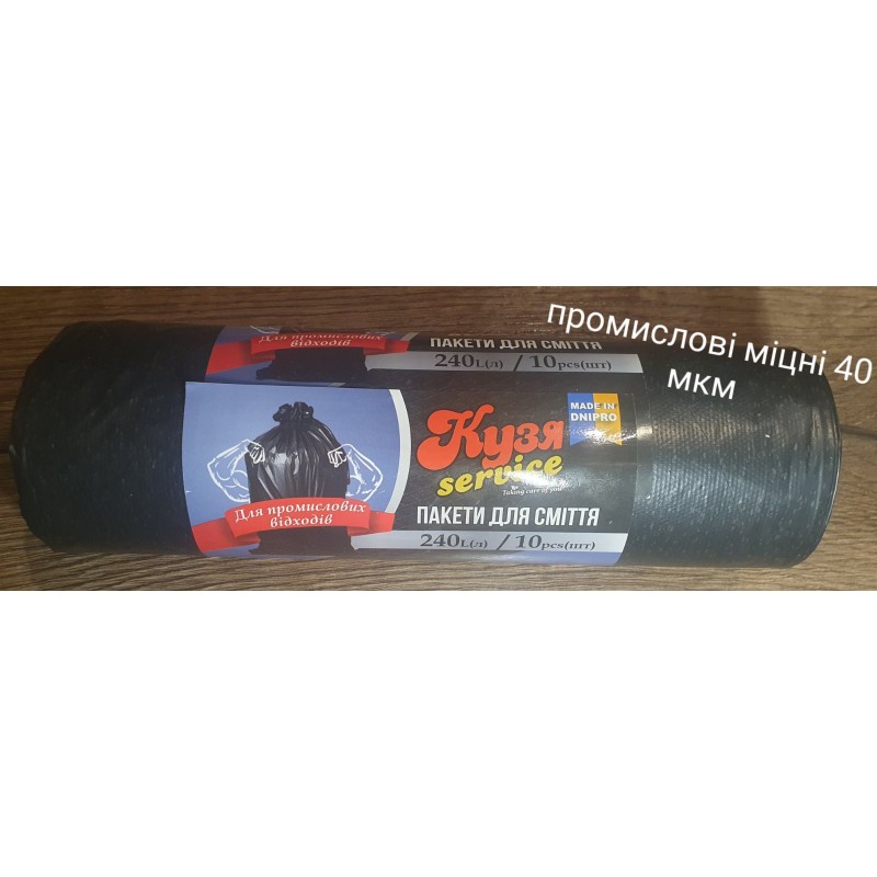 Очень прочные пакеты для мусора 240 литров 10 отрывов 40 мкм.